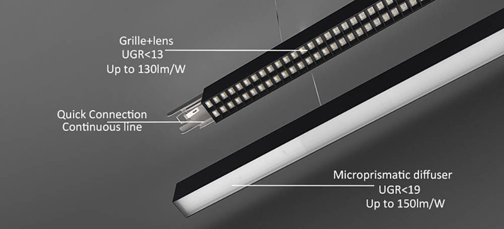 Luminena Pro light matchs any interior space thanks to the architectural rectangular design together with its opalµprismatic opics and ultra easy connection design
